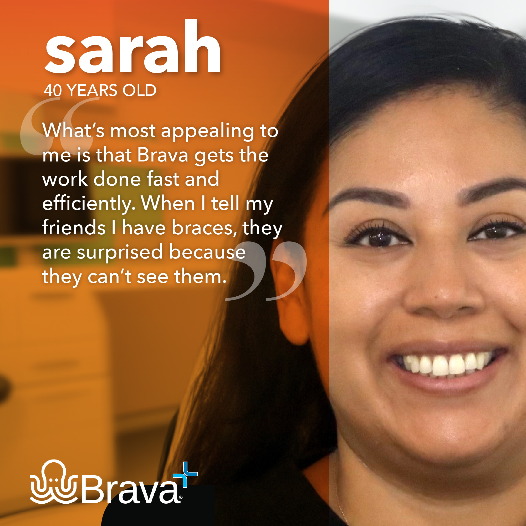 Because they’re placed on the back of your teeth, Brava Independent Movers® are completely invisible. No wires connect the teeth—so brushing and flossing are a breeze.